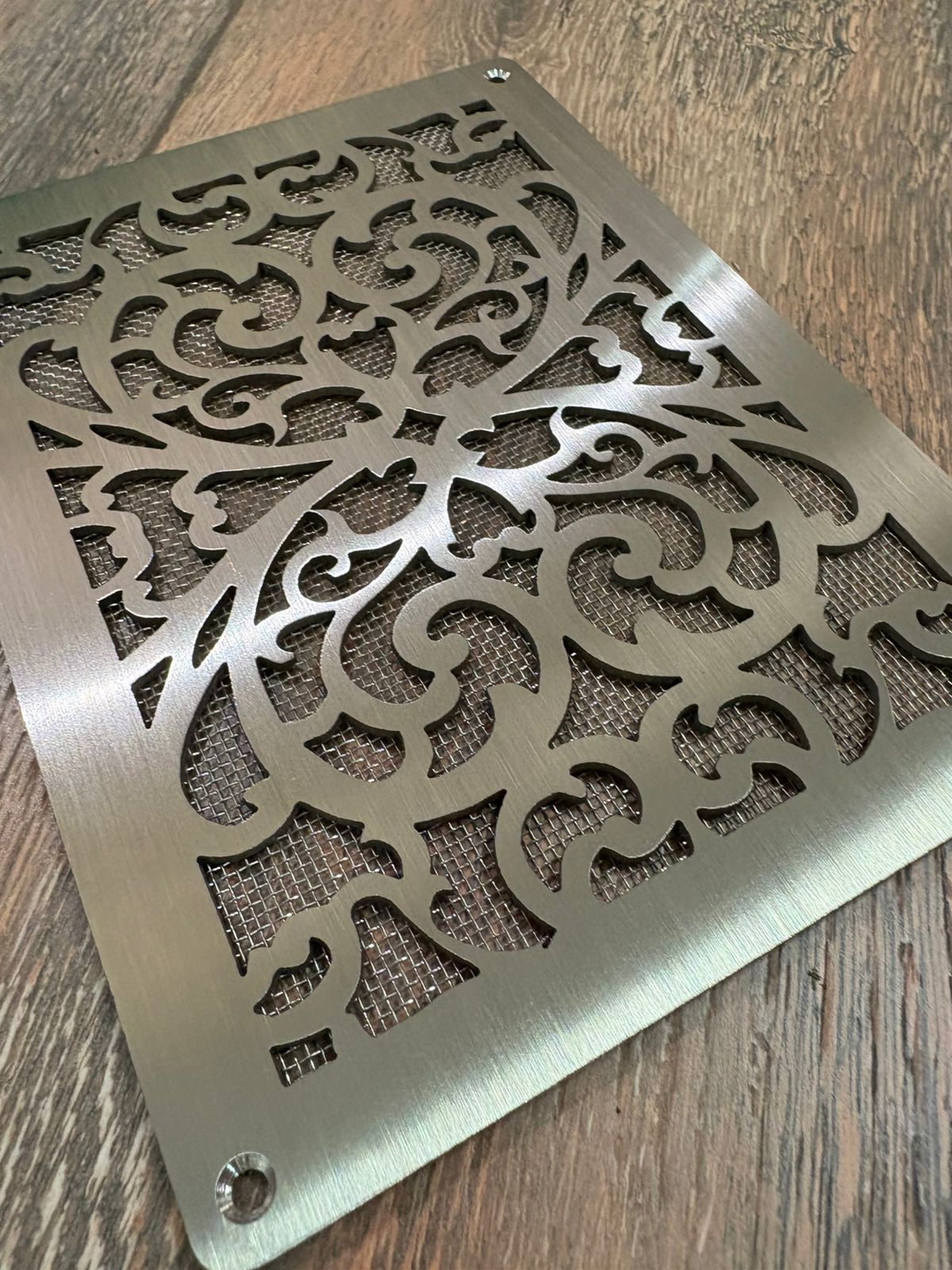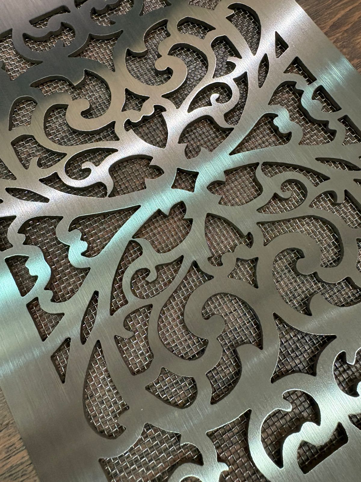 - Рисунок на решетки производится путем лазерной резки с ручной доработкой. Возможно изготовление любого рисунка, любого размера и формы по Вашим эскизам.